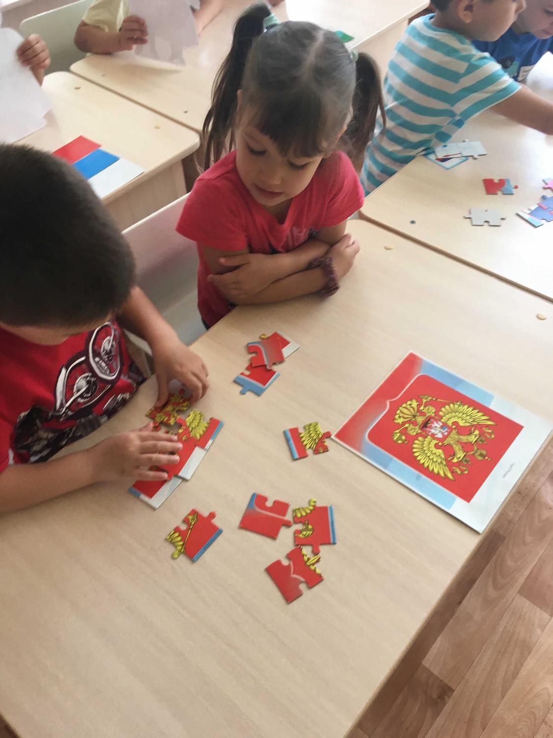 Мероприятия проходили в несколько этапов. Сначала в каждой группе была организована беседа с детьми о Дне России. Затем дети в художественно-продуктивной деятельности и дидактических играх закрепили знания символики России. Заключительным этапом стал спортивный праздник «Россия - родина моя!» и танцевальный флешмоб «Вперед, Россия!»